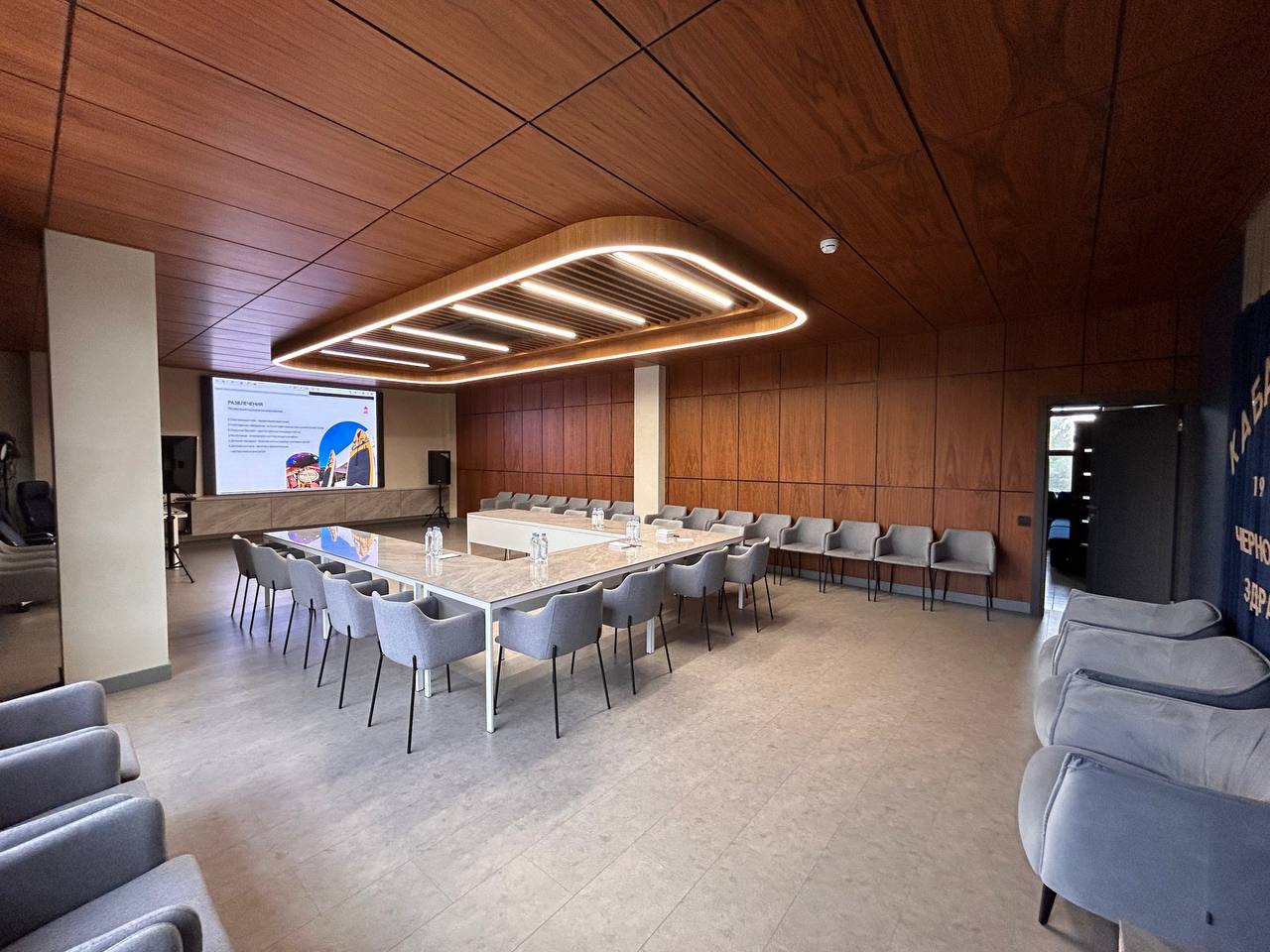 Конференц-зал "Кабардинки" подойдет для проведения мероприятий любого формата: от семинара, деловых встреч, конференции, презентации, тренинга до торжественного банкета.