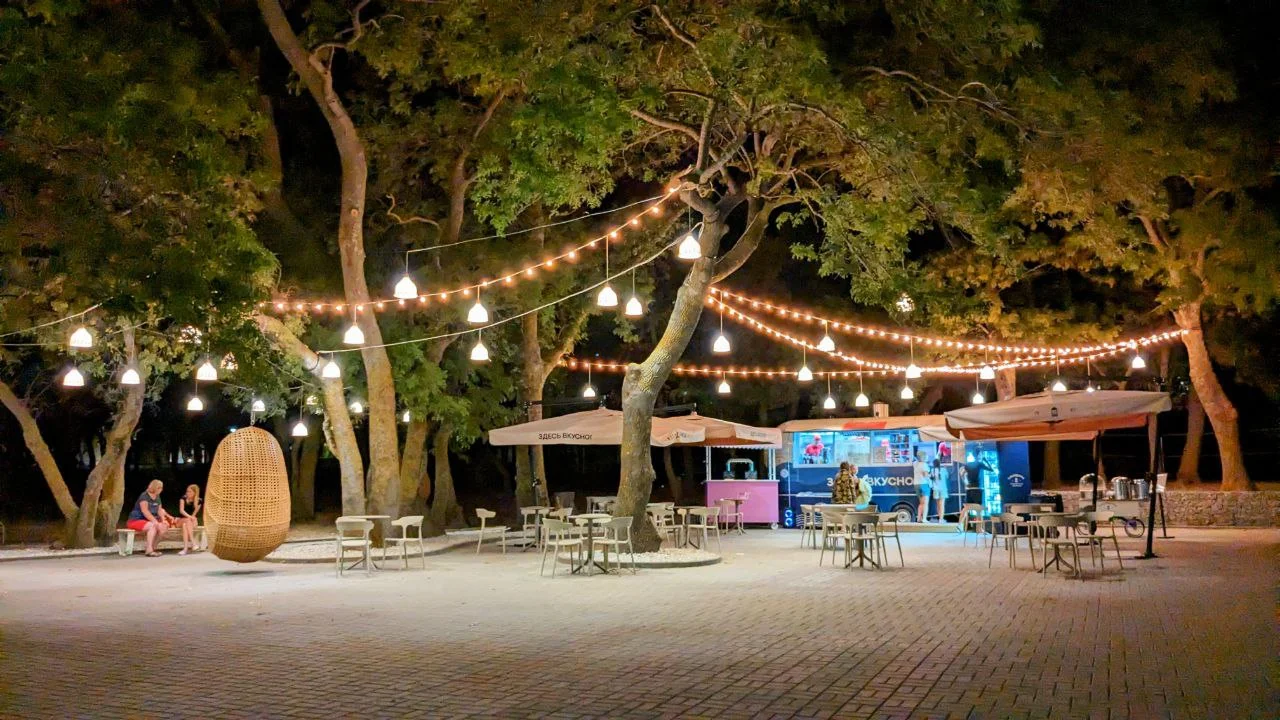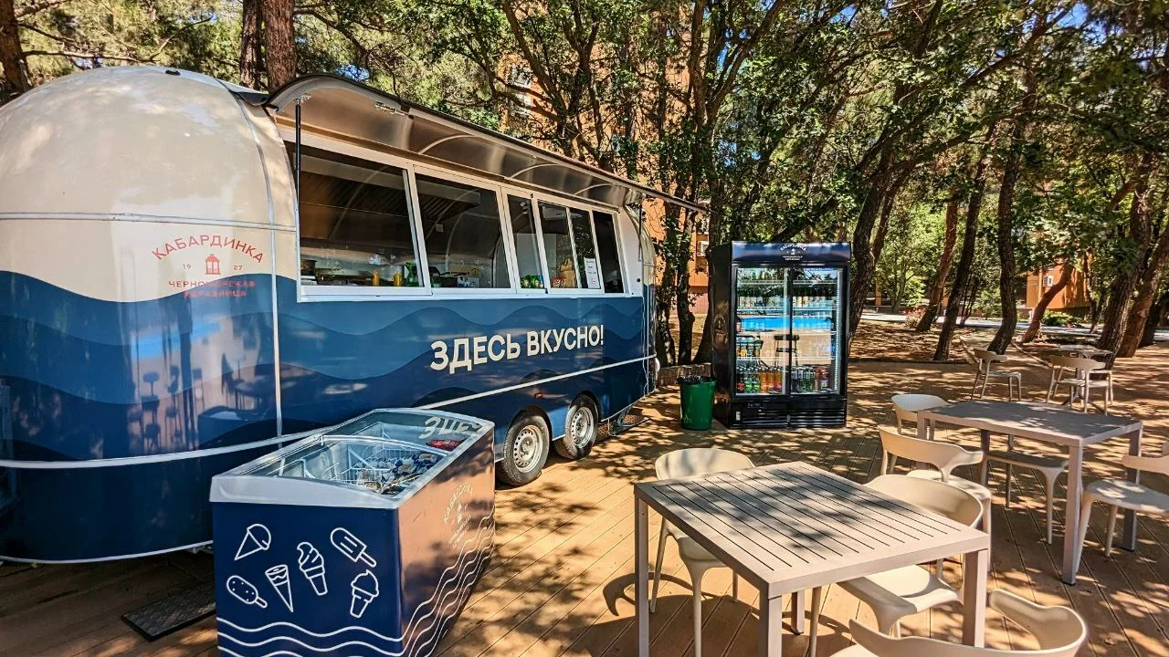 Вблизи бассейна и набережной расположены фудтраки с зоной отдыха.