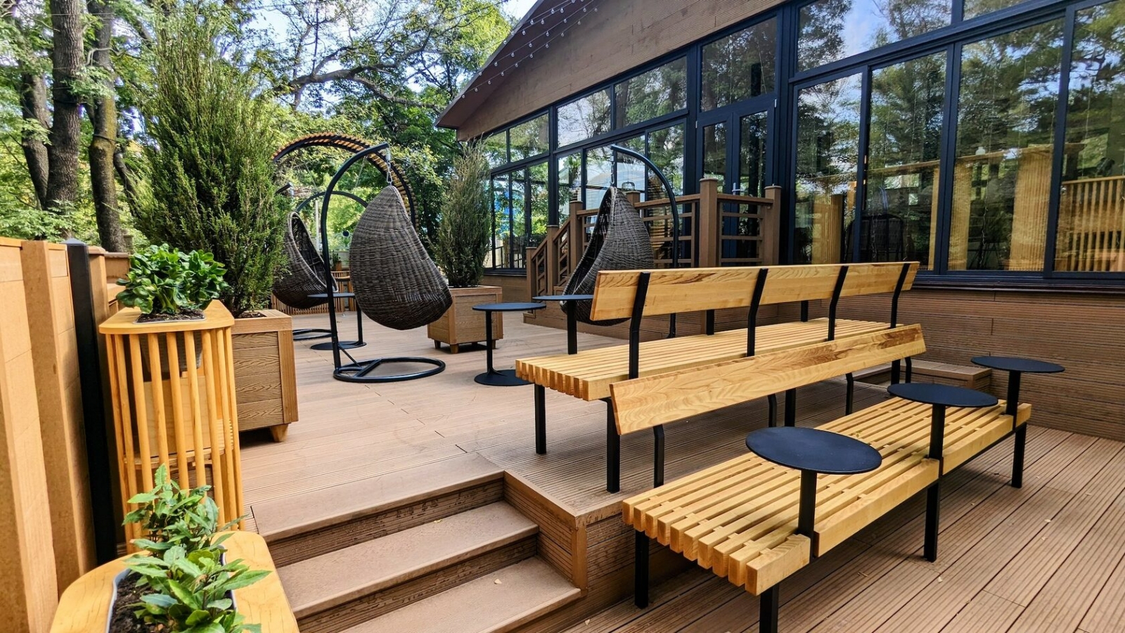 Современный ресторан a-la carte с широким выбором блюд европейской кухни с основным залом, зимней и летней террасой.